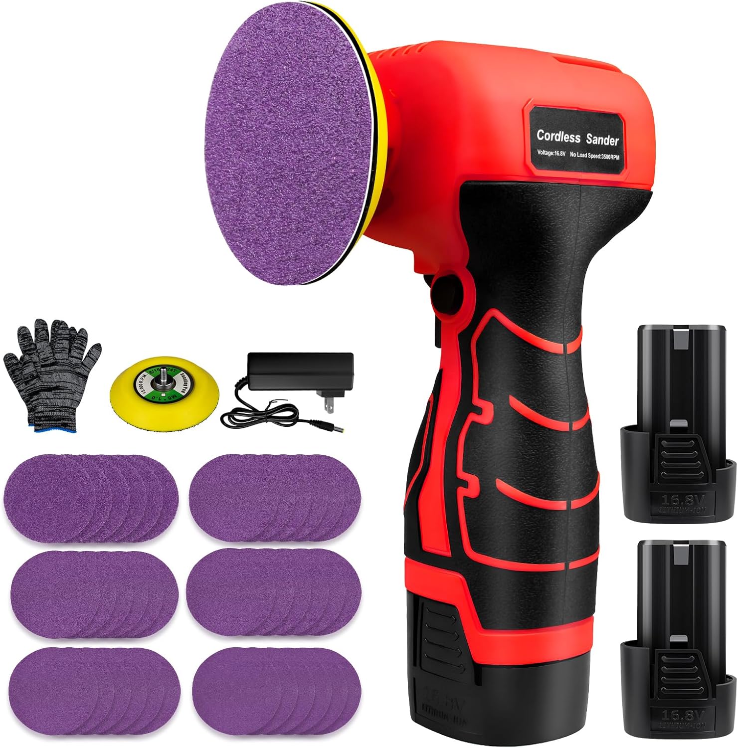 16.8V Cordless Electric Sander with 36PCS Sandpapers, 3500 RPM, 3.0Ah Battery, Lightweight & Compact Design for Wood, Metal, Paint Removal, and DIY Projects