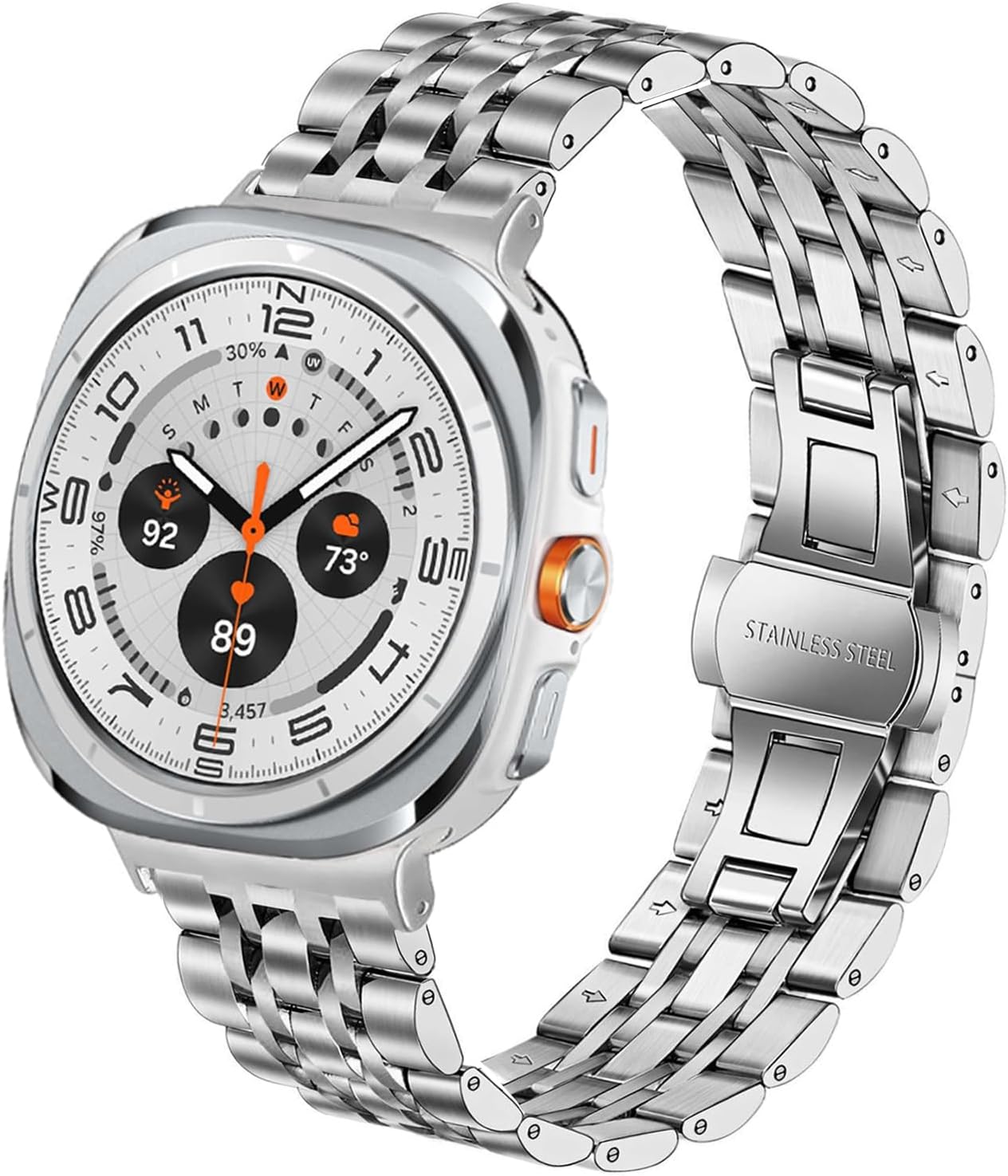 DEALELE Bands Compatible with Samsung Galaxy Watch Ultra 47mm (2025/2024), Solid Stainless Steel Metal Replacement Bracelet for Galaxy Watch Ultra 2 / Ultra 47mm Women Men Compatibility: for Samsung Galaxy Watch Ultra (47mm) 2025 for Samsung Galaxy Watch 7 Ultra (47mm) Our Service: 100% Satisfaction Service - 24 hours online quick-replies if you have any questions. We strive to provide our customers with high quality products. Please pay close attention to "DEALELE STRAP" for more new style watch bands.