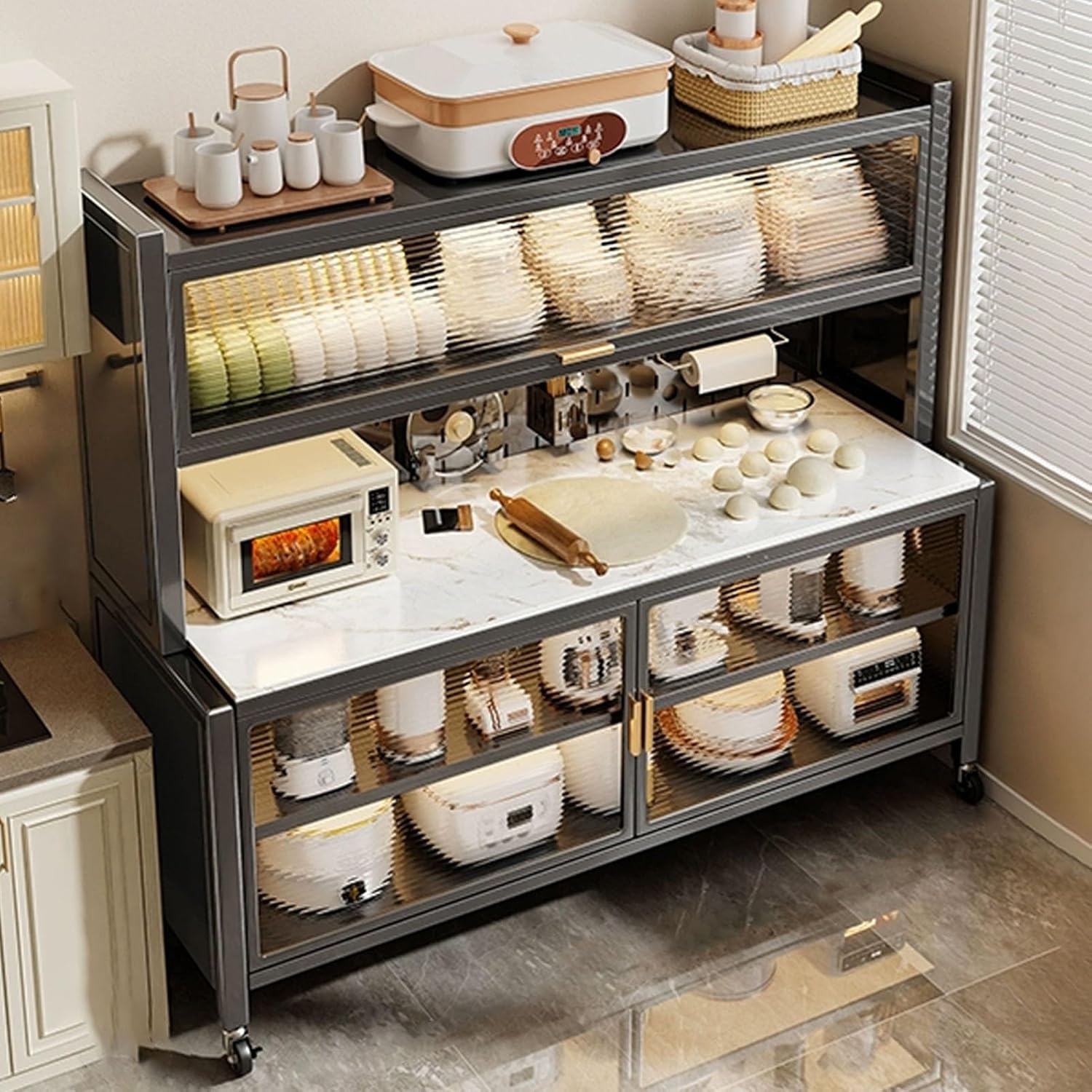 • Acrylic Flip Doors: The kitchen baker's rack with 2 acrylic flip doors, beautiful and practical, easy to find storage items, while looking more neat. Dustproof while keeping pets out