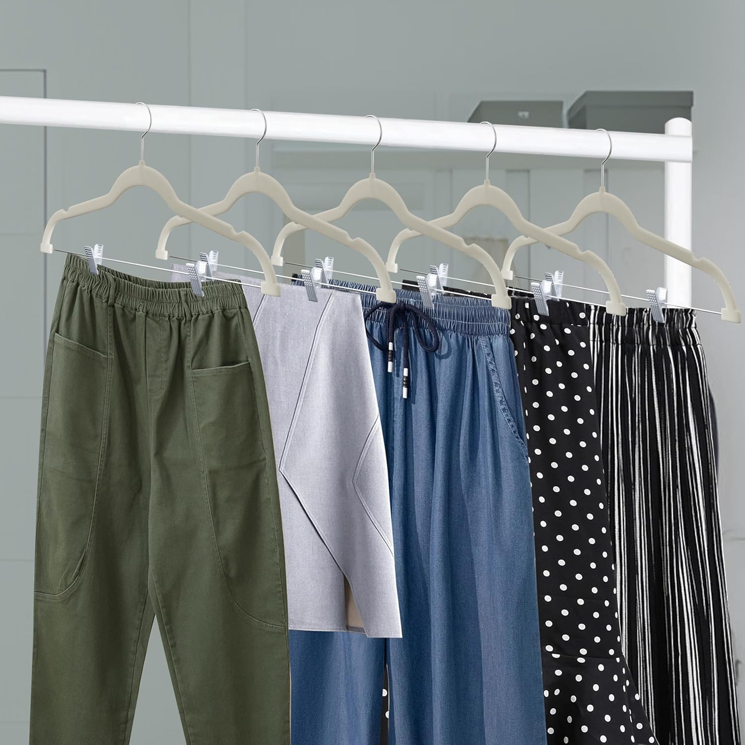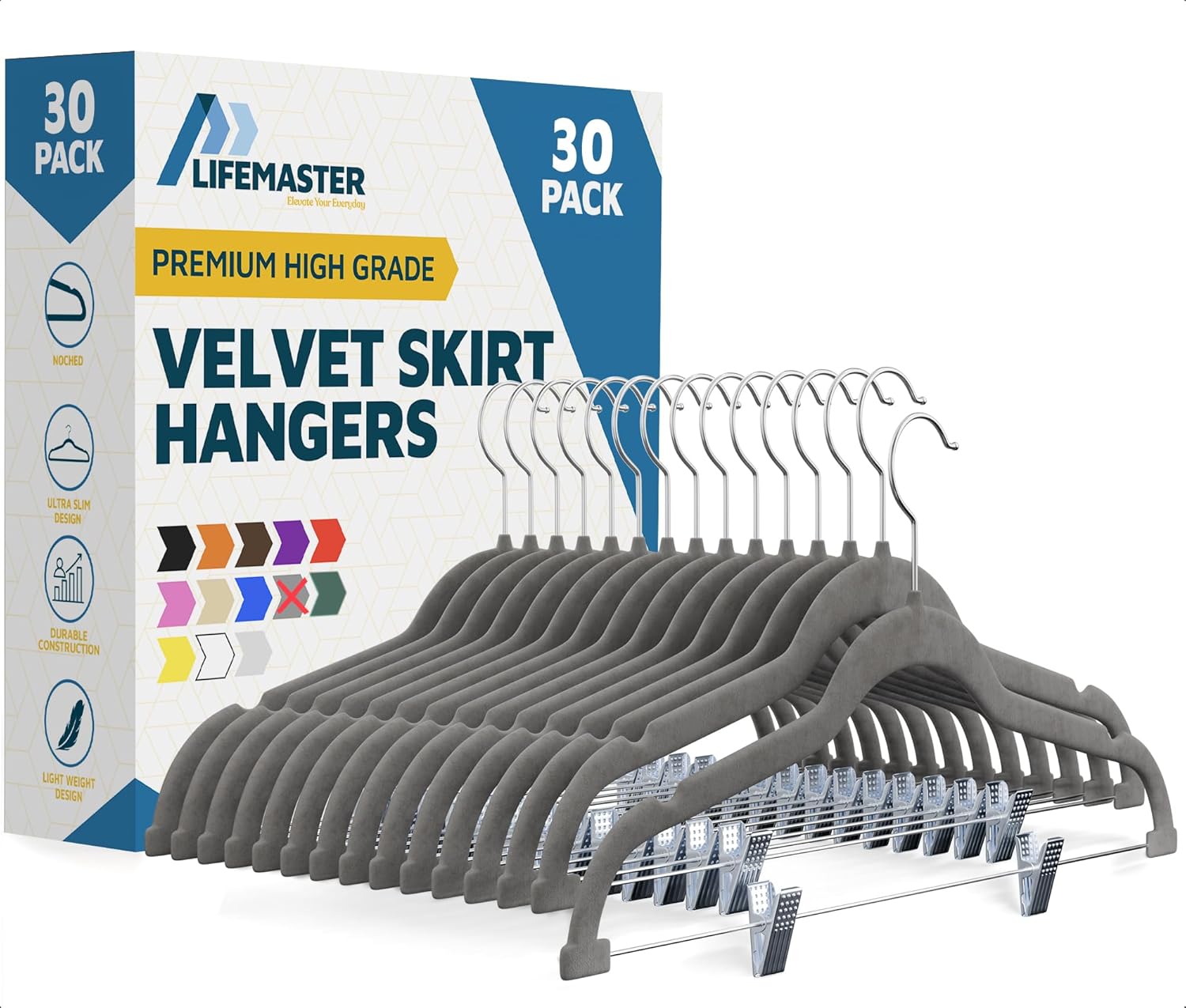 Transform your wardrobe organization with the Lifemaster Velvet Pants Hangers, a perfect blend of style, functionality, and durability. Designed to accommodate a variety of garments, these hangers are ideal for trousers, skirts, dresses, and more, helping you maintain a neat and accessible closet. The two adjustable clips are thoughtfully designed to fit garments of various widths, accommodating up to 15.6 inches. Equipped with plastic tips, the clips provide a secure grip while protecting your clothes from unsightly clip marks, ensuring your favorite pieces remain in pristine condition. Additionally, the hangers feature a 360-degree swivel hook, allowing you to access your clothing effortlessly from any angle. Whether you're selecting an outfit for the day or organizing freshly laundered items, these hangers make the process smooth and hassle-free. For added versatility, the hangers are designed with smart shoulder notches that securely hold garments with thin straps, such as dresses, skirts, and bras, preventing them from slipping off. The slim 0.2-inch design, crafted from recycled ABS material and finished with a soft velvet coating, ensures that your clothes stay in place, retain their natural shape, and remain wrinkle-free. Despite their slim profile, these hangers are sturdy enough to hold up to 10 pounds, making them both practical and elegant. Available in a sleek Ivory color, the Lifemaster Velvet Pants Hangers come in a convenient pack of 30 with each hanger measuring 17.13’’ x 8.86’’. Their modern design not only enhances the appearance of your closet but also maximizes space, making them a must-have for any wardrobe.