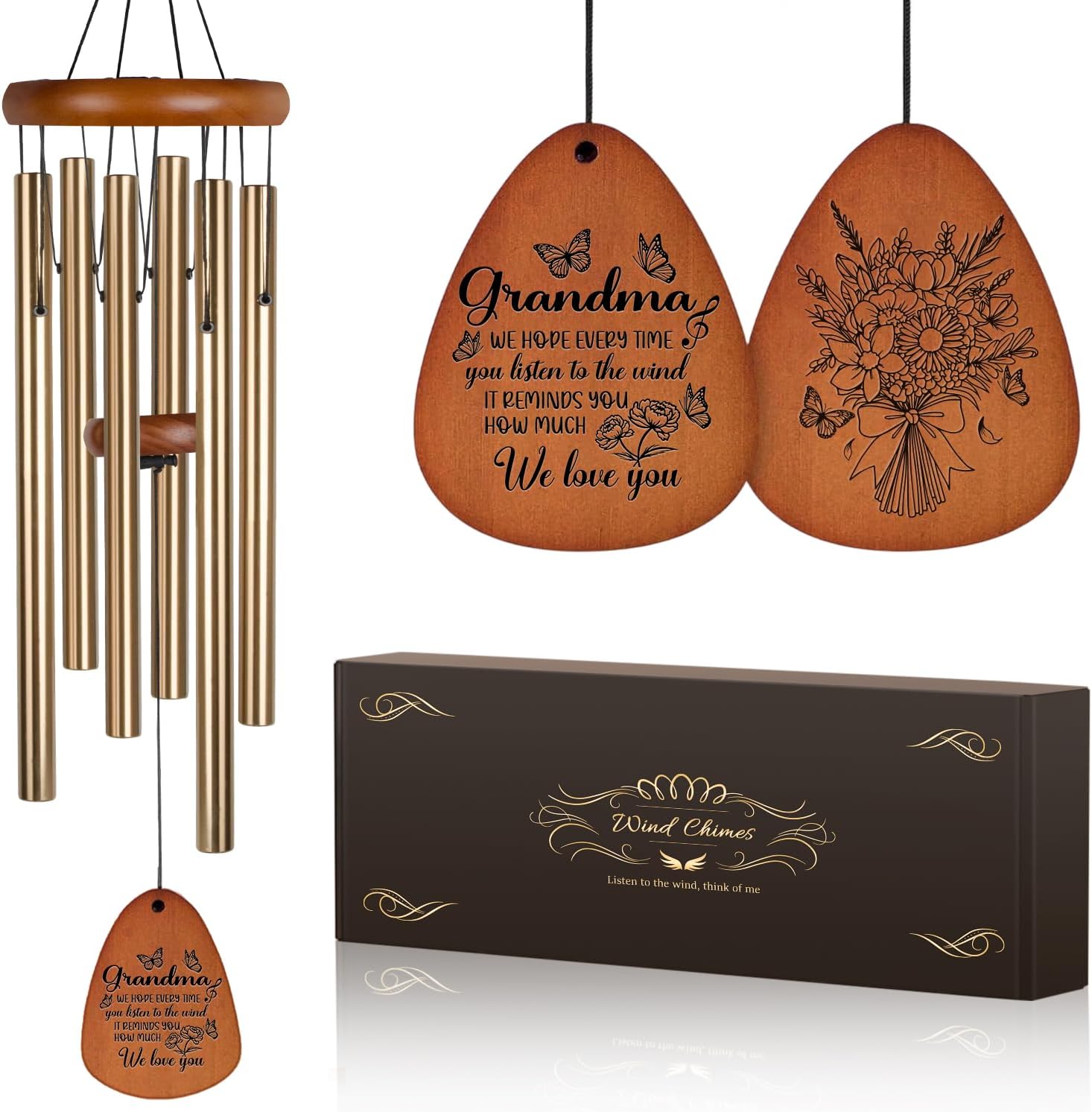Key Features & Benefits:Premium Golden Tones - 6 precision-tuned golden aluminum tubes produce warm, resonant melodies Sentimental Floral Design - Handcrafted floral bouquet centerpiece adds heartfelt decorative charm Weather-Resistant Construction - Powder-coated finish protects against rust, fading, and weather damage Gentle Wind-Activated Sounds - Creates peaceful ambiance without being disruptive Ready-to-Gift Packaging - Beautifully presented for immediate giftingPerfect Placement Locations: Memorial gardens honoring loved ones Porch entryways welcoming guests Meditation corners for relaxation Nursery windows soothing babies Patio spaces enhancing outdoor living Hang in a breezy location for optimal soundWipe clean with soft, dry cloth when needed For extended longevity, bring indoors during extreme weather "Each gentle chime carries your love and memories on the wind - a beautiful tribute that lasts through seasons."