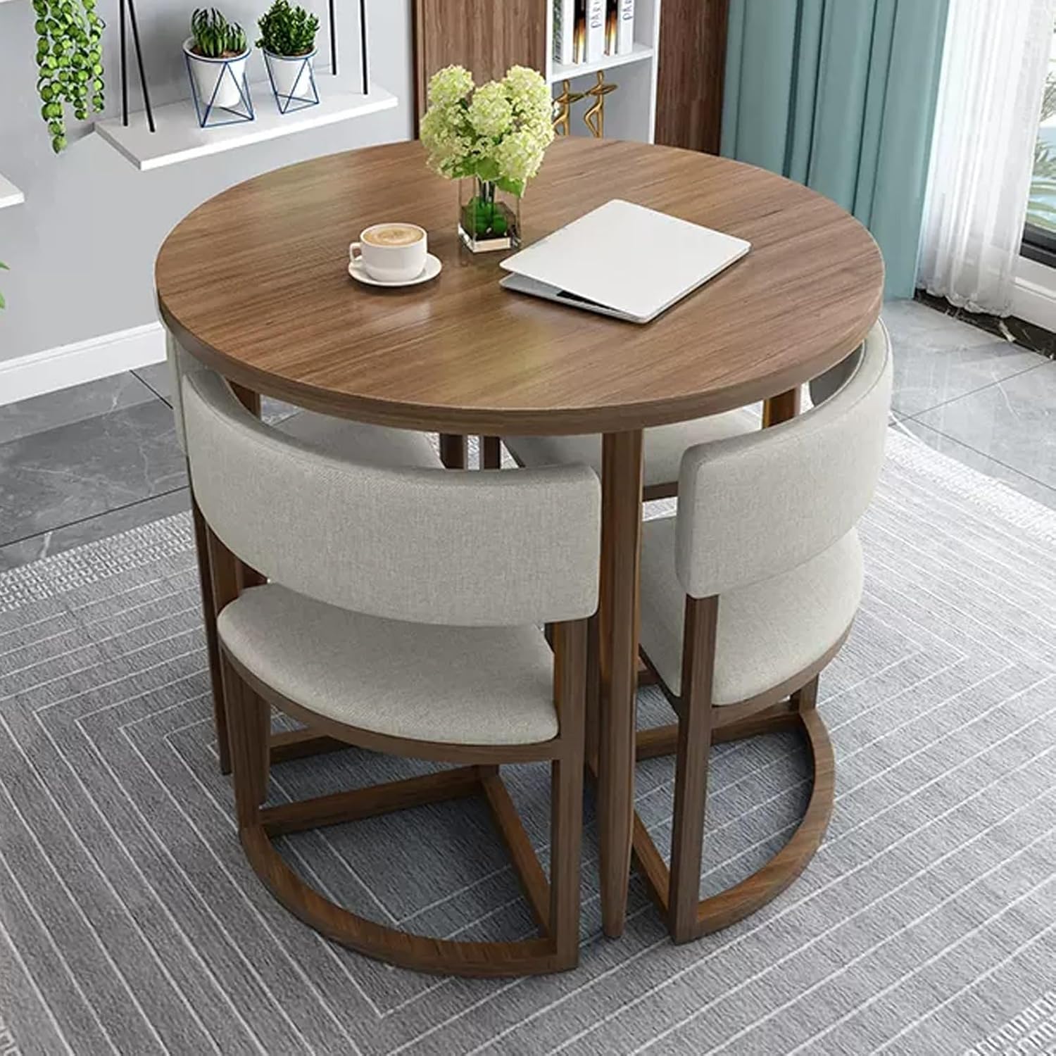 • Multi Scenario Appropriate: Round kitchen table and chairs for 4 can be used not only in home but also in cafe, reception center, office, hotel lobby, cinema, library, lounge, terrace, sales office, garden, place for its sophisticated look.