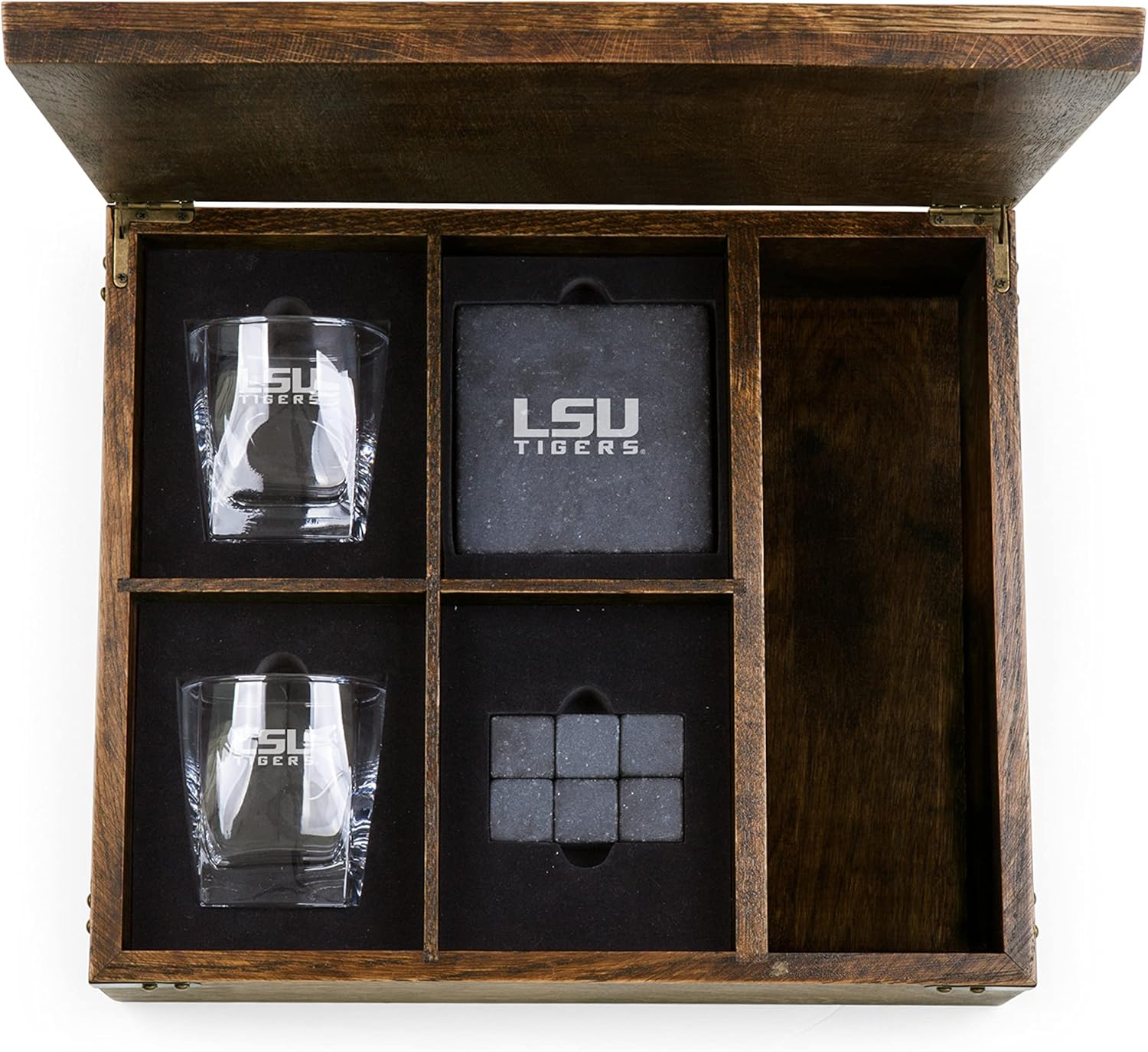 Every tradition and heirloom had to start somewhere, and you can start your own with The Whiskey Box, a dark and handsome solid oak chest with rustic nails and secure storage for your favorite 750mL whiskey bottle, two 8oz heavy-bottomed lowball glasses, two soapstone coasters, and two soapstone whiskey stones (to chill your drink without watering it down). At once modern and vintage, this whiskey set will be the artifact your grandkids remember standing stately and unassuming in your man cave.