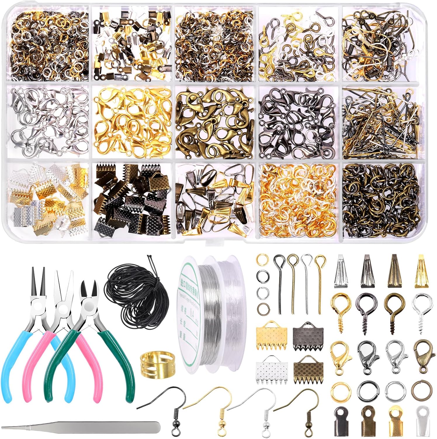 π Swpeet 1490Pcs Jewelry Making Supplies Kit with Jewelry Making Tools, Jewelry Pliers, 4 Color Jewelry Wires and 38 Styles Jewelry Findings, Helping Hands Magnifier Necklace Chain Awl Tweezers Scissors π Why Choose Us? π 1.Wide Application β¨ It is great set for many jewelry making projects such as making earrings, making bracelets, key chains, repairing necklaces, making lanyards, and other jewelry related projects. π 2.Preventing Rusting β¨ Don't worry if the jewelry making pliers you receive have some oil on the head, making them look dirty. This is for preventing rusting. Please just wipe it clean with a cloth before using. π 3.Great Gift β¨ Our jewelry supplies set is the perfect gift for DIY enthusiasts and crafters. If you like to creat, repair and make your own things, especially jewelry and hand craft, I believe it will not let you down. π Specifications: β¨ Material: High-quality Metal Material β¨ Size: As Picture Shown β¨ Color: Blue, Red, Green, Silver, Gold,Gun-black, Bronze β¨ Quantity: 1490Pcs π Package Includes: β¨ 3Pcs ----- Jewelry Pliers β¨ 4Pcs ----- Jewelry Wires β¨ 5Pcs ----- Needles β¨ 2Pcs ----- Tweezers β¨ 1Pcs ----- Caliper β¨ 1Pcs ----- Awl β¨ 1Pcs ----- Scissors β¨ 1Pcs ----- Waxed Necklace Cord β¨ 1Pcs ----- Helping Hands Magnifier β¨ 360Pcs ----- 4mm Open Jump Rings β¨ 300Pcs ----- 6mm Open Jump Rings β¨ 360Pcs ----- 4mm Close Jump Rings β¨ 80Pcs ----- Lobster Clasps β¨ 40Pcs ----- Melon Button β¨ 120Pcs ----- Eye Pins β¨ 60Pcs ----- Spiral Eye Pins β¨ 40Pcs ----- Earring Hooks β¨ 40Pcs ----- Ribbon Ends β¨ 60Pcs ----- Rope Ends β¨ 3Pcs ----- Needle Thearders β¨ 1Pcs ----- Jump Ring Opener β¨ 1Pcs ----- Tape Measure β¨ 1Pcs ----- Black Zipper Bag β¨ 4Pcs ----- Necklace Chain β¨ 1Pcs ----- Store Box β¨ In total 1490Pcs