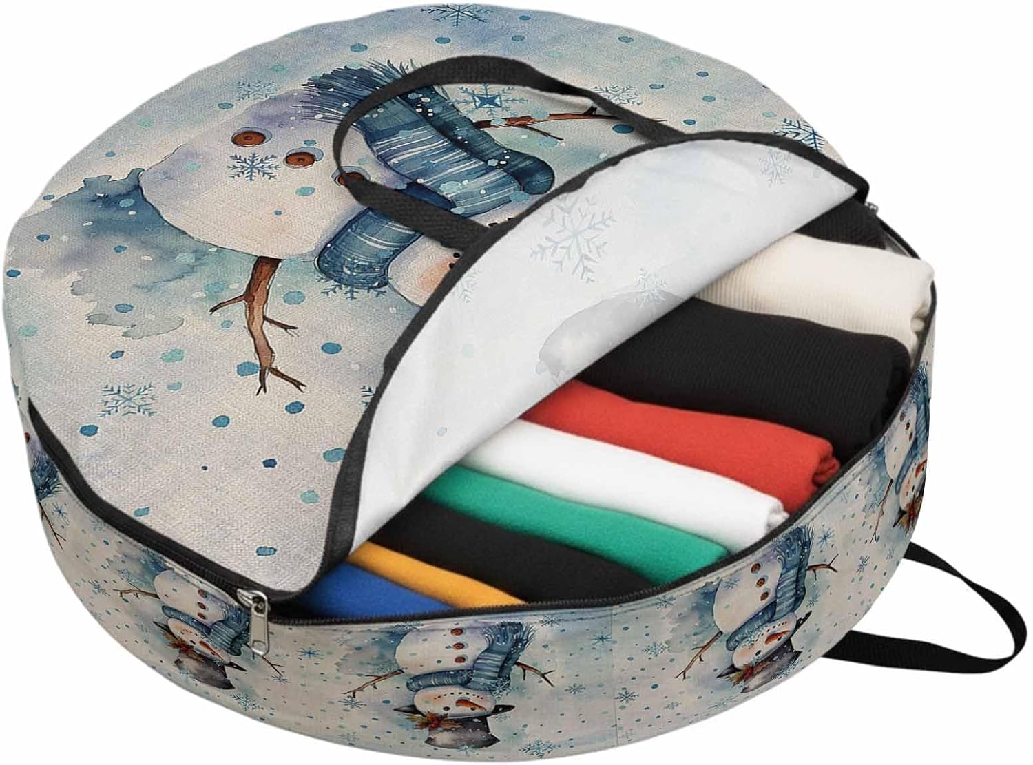 Reclaim Your Closet Space with the Round Storage Solution! Material: polyester Diameters: 24 inch, 30 inch, 36 inch Depth: 7 inches Package Includes: Round Storage Bag One Bag, Endless Possibilities: Whether you are swapping out your summer wardrobe, moving into a new dorm, or packing away holiday decorations, this bag has you covered. The circular design is uniquely suited for: Bedding: Comforters, quilts, sheet sets, and oversized pillows. Clothing: Winter coats, sweaters, and bulky ski gear. Home Decor: Holiday wreaths, garlands, and floral arrangements. Outdoor Gear: Camping blankets, sleeping bags, and beach towels. Dual Zippers: The high quality double zipper design allows the closet organizer to open wide from both sides, making it effortless to load and unload even the bulkiest comforters or wreaths. Reinforced Handles: Sturdy, reinforced handles are securely stitched to provide extra strength and a comfortable grip when carrying heavy loads or pulling the bag from under a bed. Clear Label Pocket: A transparent built-in label holder allows you to quickly identify the contents of each bag without ever having to unzip it, keeping your storage perfectly organized.