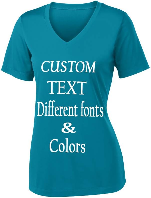 PERSONALIZE YOUR OWN ladies V neck tee - add names, type your text, text your quote, design like you always wanted, personalize from the front side as well as backsideIDEAL LADIES V neck tee for doing workout in the gym, take them with you on vacations, family trip, birthdays gifts and wear on weekends or on special occasion, perfect for gym and doing workoutDECENTLY FIT ladies V neck will make you feel comfortable, you'll be the biggest fan of this 100% Polyester interlock with PosiCharge technology, just wear it and you are all set for go miles and long haulTHIS CUSTOM LADIES sweat wicking, breathable V neck tee is must have t-shirt for your winter wardrobe, It'll keep your body warm in cold blistering winter weather when you are all set for workoutCUSTOMIZATION is great way to put your mark or punch on a present when you handout someone any customized gift on a very special occasion like on the anniversary, housewarming custom gift, birthdays presentTOUGH AND DURABLE for machine wash, wash inside out. Only non-chlorine bleach when needed. Tumble dry low. Do not IronCreate your own personalized ladies V neck tee with any of your text design and custom text with different fonts and colorsDesign your ladies V neck tee by printing on the front side as well as backsideSizes available X-Small, Small, Medium, Large, X-Large, XX-Large, XXX-Large, XXXX-LargeVery comfy 100% Polyester interlock with PosiCharge technology t-shirtPlot your any text or any text in any design and we'll take care of the rest, Printed in the USACare Instruction:Machine wash cold. Inside out with like colors. Only non-chlorine bleach when needed. Tumble dry low. Do not iron