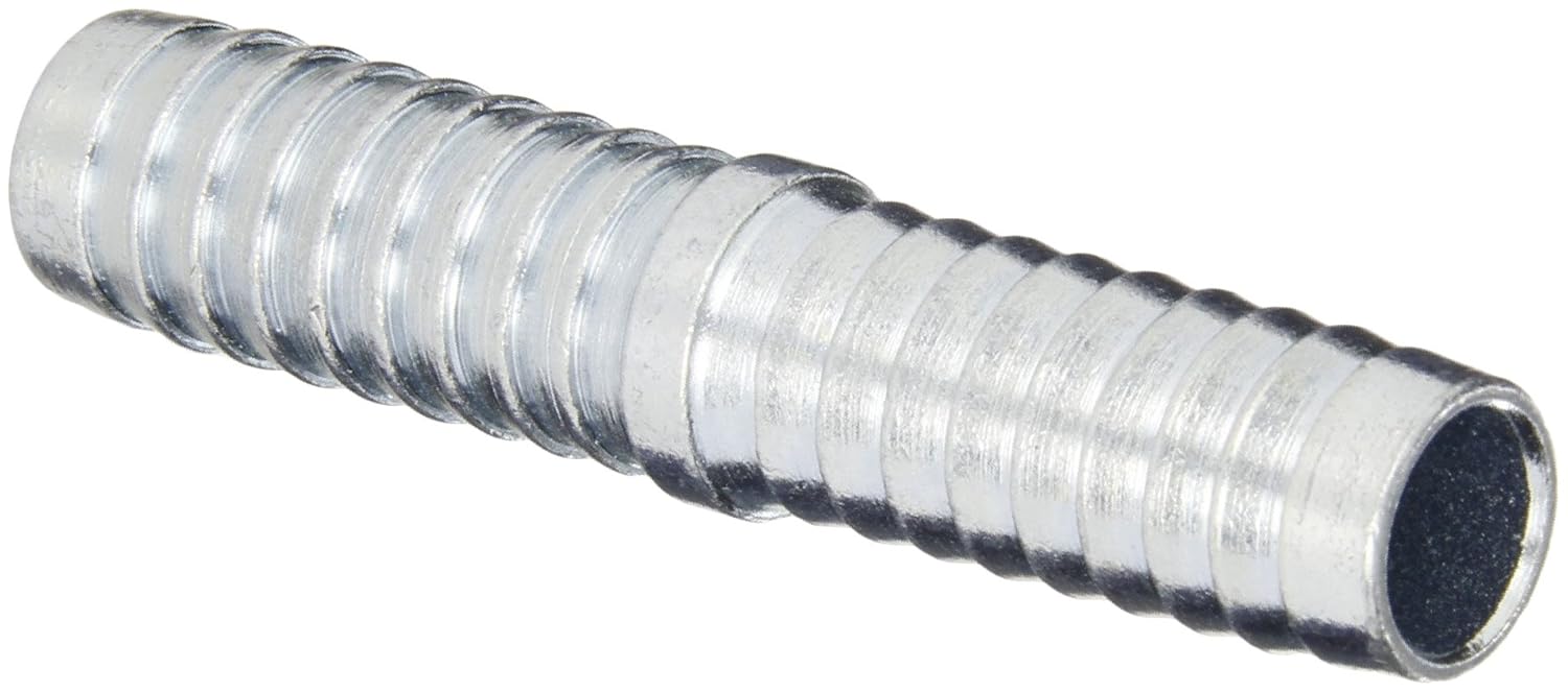 This Dixon DM Series mender hose fitting is made of zinc plated steel and is suitable for repairing a broken hose. This hose mender has barbed ends to create a tight seal on a hose when used with a hose clamp or crimp sleeve or ferrule (not included). It is made of zinc plated steel for greater corrosion resistance than unplated steel. It is not recommended for compressible products such as air, nitrogen, or steam.Hose fittings connect, control, change the direction of, and terminate the flow in piping and hose systems. They are made of brass, stainless steel, galvanized steel, and other materials that resist corrosion, pressure, and wear. Hose fittings have various types of connections, including threaded, barbed, push-to-connect, dry disconnect, and others including those based on internationally-accepted specifications. Hose fittings are used in systems such as air compressors, automatic manufacturing operations, aircraft controls, and tire installation in industries including agriculture, mining, road construction, firefighting, and aviation.Dixon Valve & Coupling Company manufactures pipe and hose fittings and accessories. The company, founded in 1916, is headquartered in Chestertown, MD.