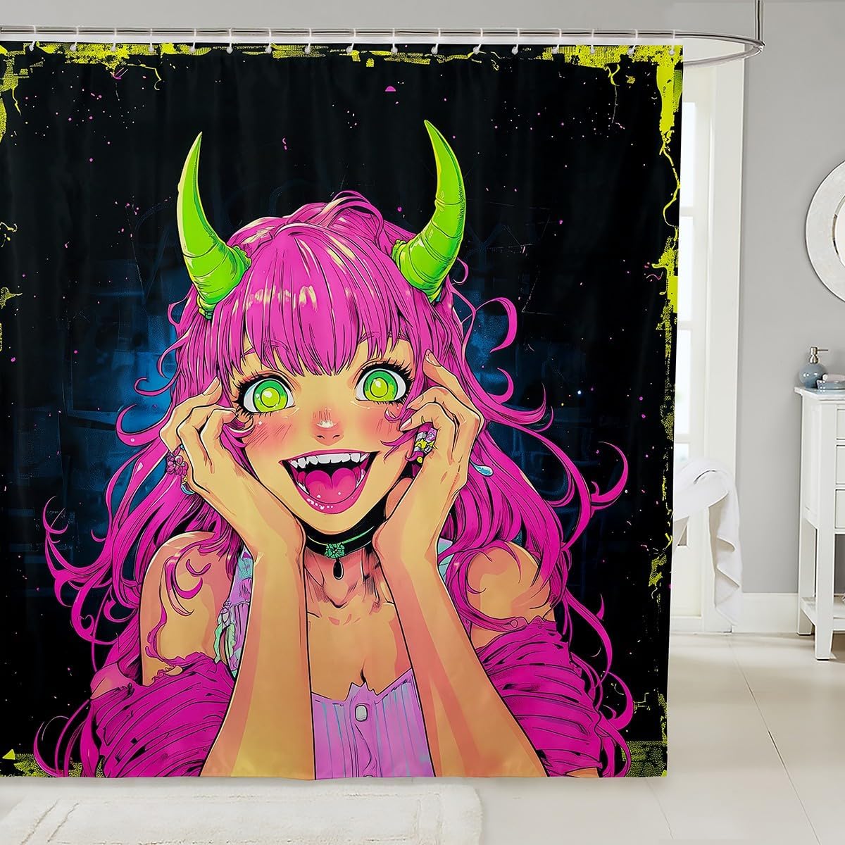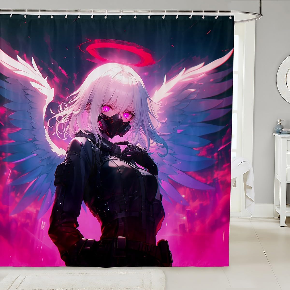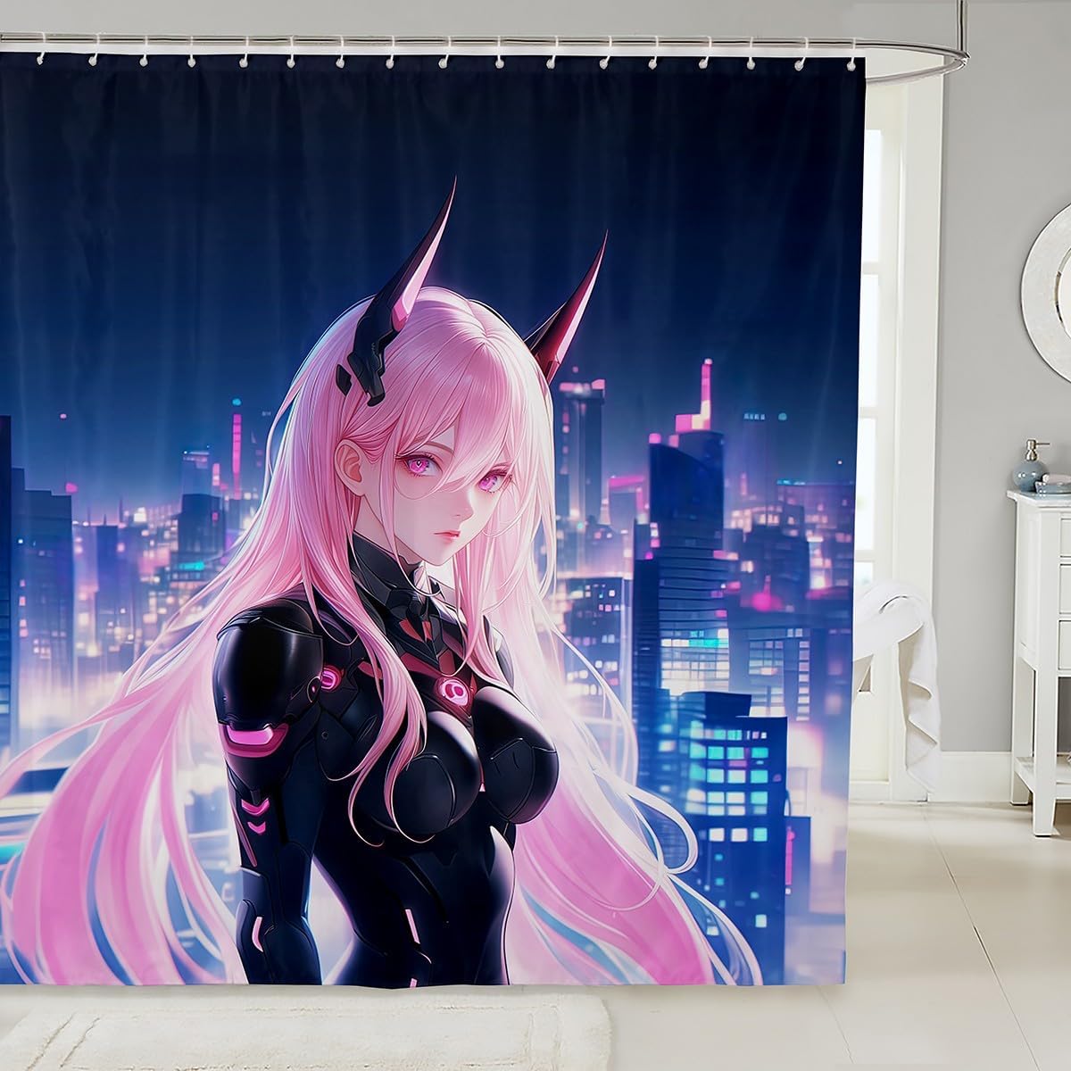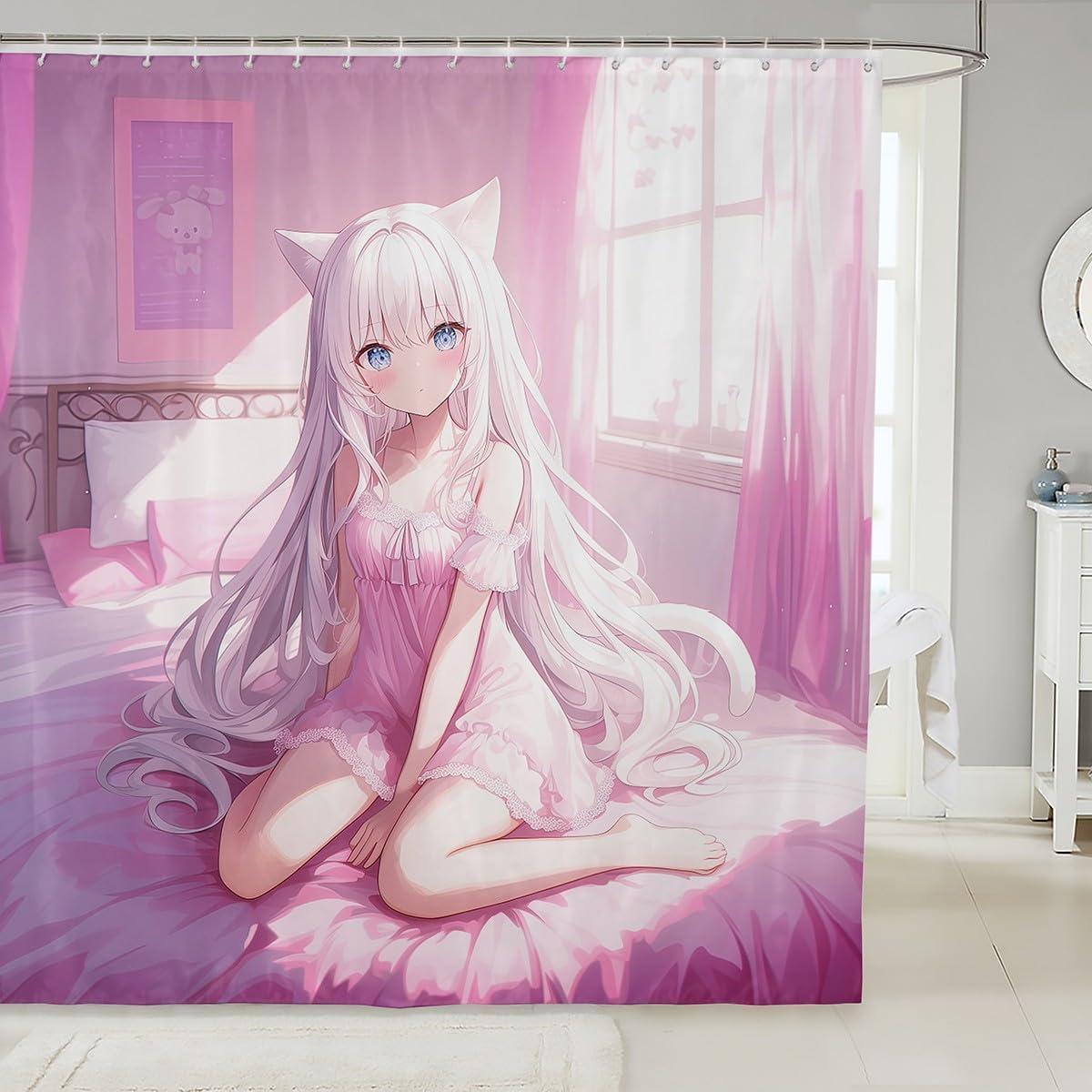 Erosebridal Girls Japanese Anime Fabric Shower Curtains, Kawaii Anime Girl Bath Curtain Cartoon Girl Shower Curtain for Kids Teens Adult, Japanese Animation Sci Fi Bathroom Accessories, 72" W X 78" L