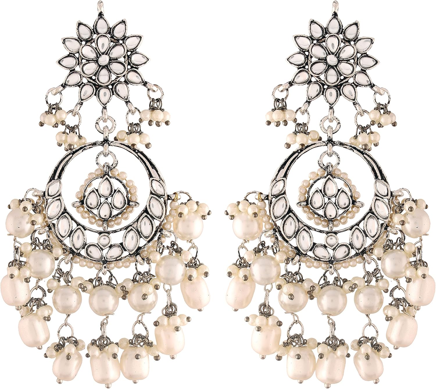 This Earring set is crafted in gold plated finish with stunning antique finish - these earrings are really special .The Earrings feature kundan & stone studded. Be stylish and smart with these Golden Earring. Perfectly crafted. Wear it with a suit or a saree, and lehenga for an ethnic yet classy look