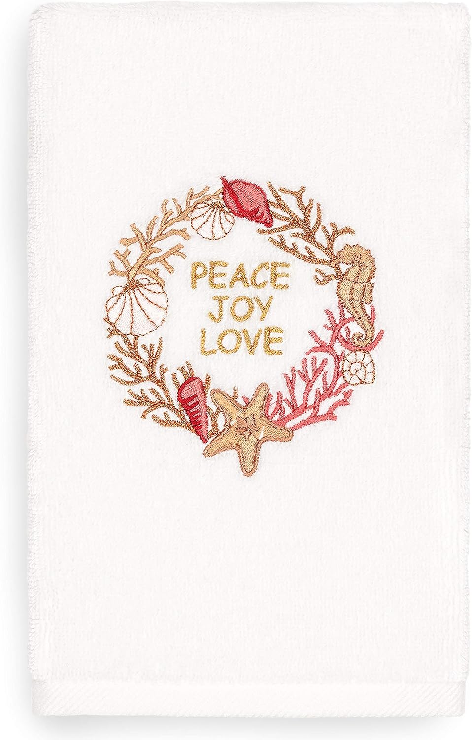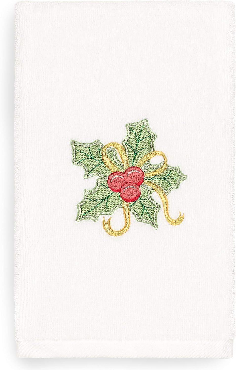 Your Christmas decorations are not complete without lighthearted embroidered hand towels for your guest bath. These “Christmas Scroll Tree” towels feature a modern applique tree decorated with sparkling metallic scrolls & topped with a radiant Christmas star, which brings holiday spirit to your home! This special & luxurious Christmas towel is manufactured with more cotton per square inch for maximum softness and absorbency. These towels are produced in Turkey using 100% solar energy and embellished in the U.S.A.