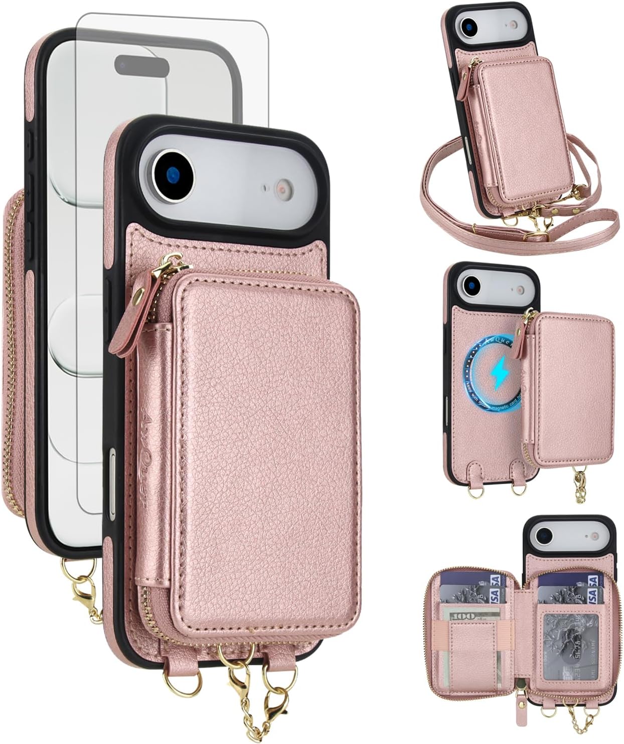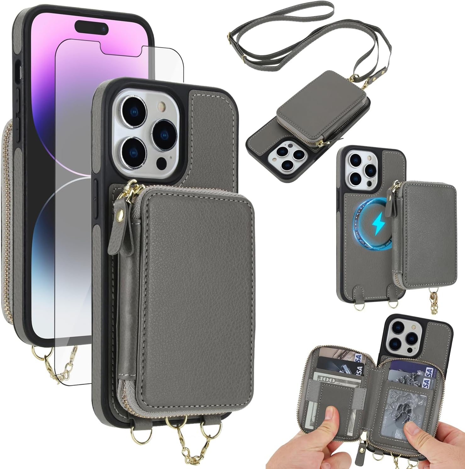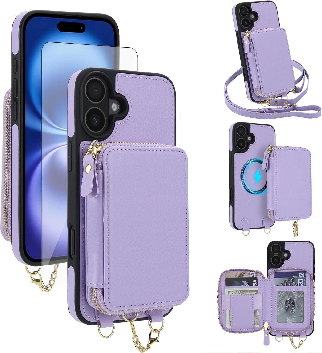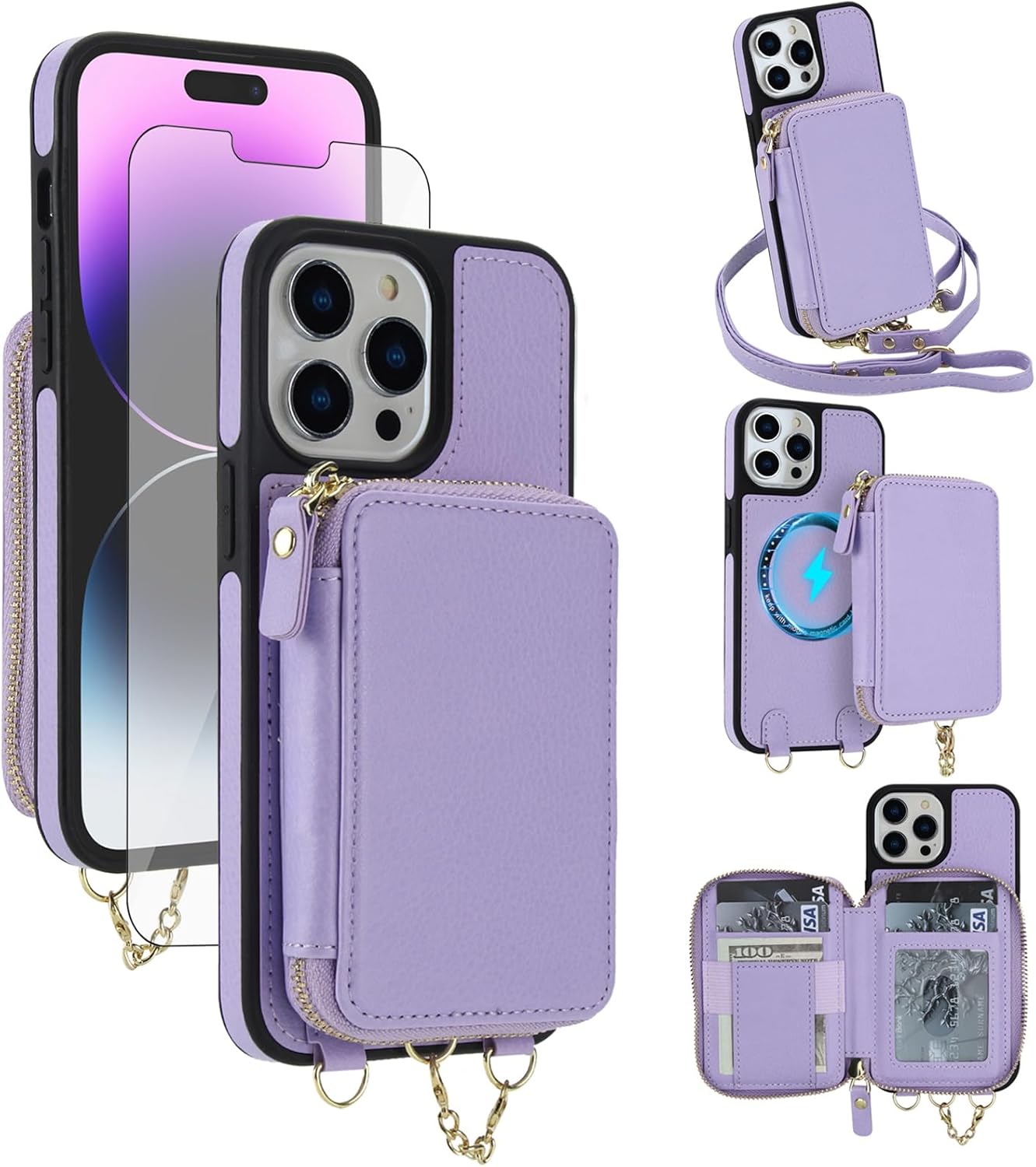 【Compatible Models】: Compatible with iPhone 13 / iPhone 14 (6.1 inch), NOT compatible with other devices.【Package includes】: We will send the phone case with 1 piece tempered glass screen protector + 1 detachable crossbody strap. This case is made of high-quality durable PU leather above odor. It would be a nice gift for your lover, your family and your friends.【RFID Blocking Material】:The information data in the chips of your cards can be read and copied by RFID technology through radio signals. In this case, your cards are not safe enough even though they are in your pocket. RFID block material applied to our purse case can effectively avoid such problems and keep your cards safe.