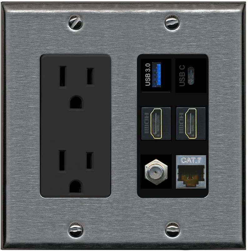 | Included Components | 15 Amp/125V Power Outlet, 2 Gang Frame, 6 x Female Jacks (Assembled), Screws |