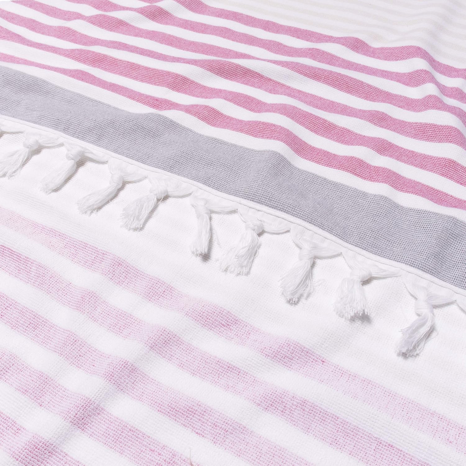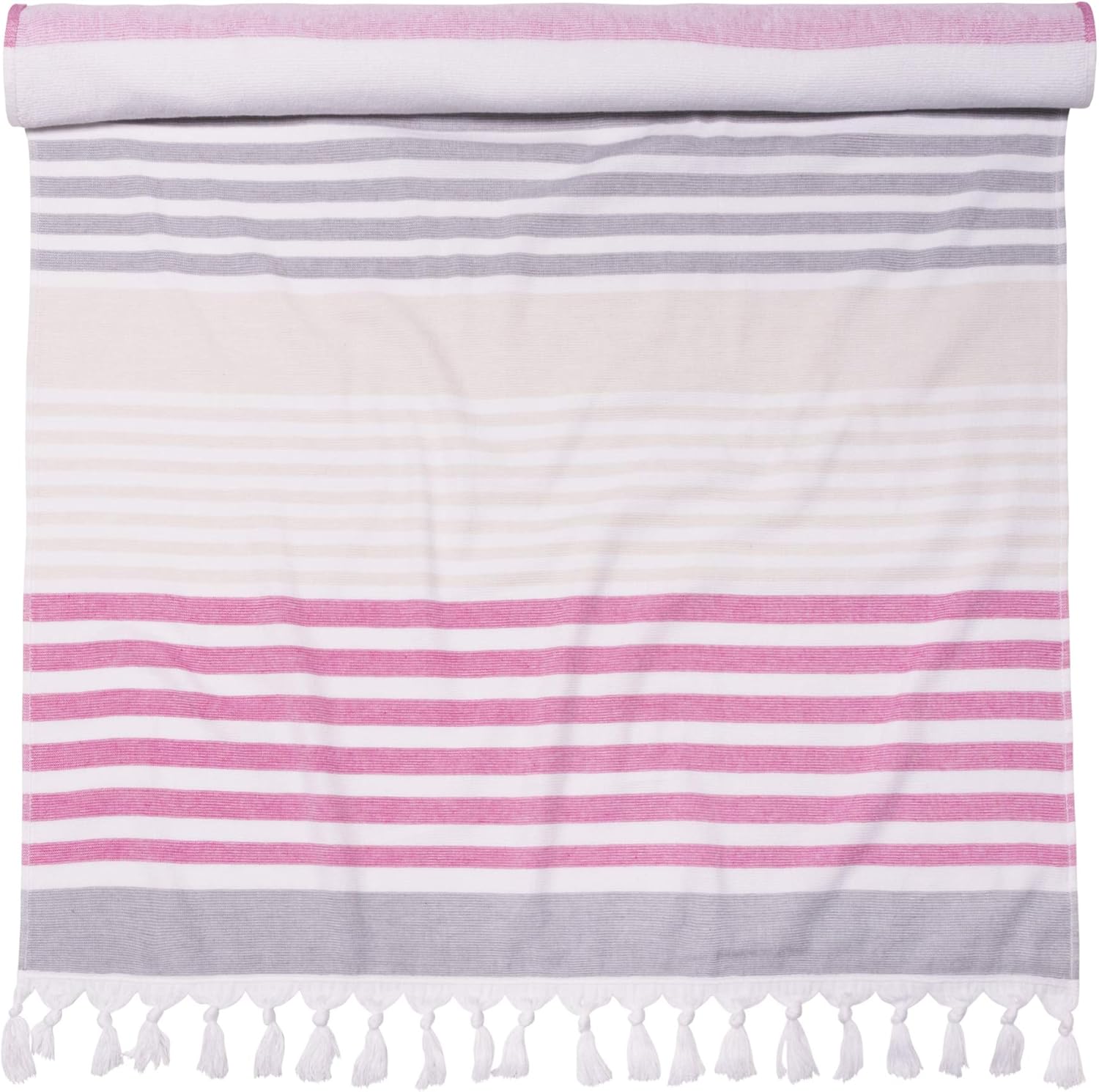 Enjoy some fun in the sun with the Superior Racer Stripe Beach Towel. Crafted from Cotton, this oversized beach towel is lightweight and absorbent to offer you a quick dry after a dip in the ocean, pool, or hot tub. Featuring a woven texture that is soft to the touch on one side and a highly absorbent terry weave on the other side, enjoy instant relaxation while you lounge atop this towel. The varying stripe designs are featured in an array of bright, seasonable color options with tassel details on the ends for a modern style. This lightweight towel folds up compactly to fit into any beach bag or suitcase to accompany wherever your aquatic adventures may take you.