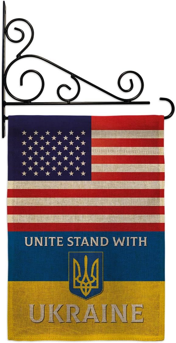 US Stand With Ukraine Garden Flag Set Wall Holder Regional Friendship USA American Alliance World Country Particular Area Small Decorative Gift Yard House Banner Made In 13 X 18.5