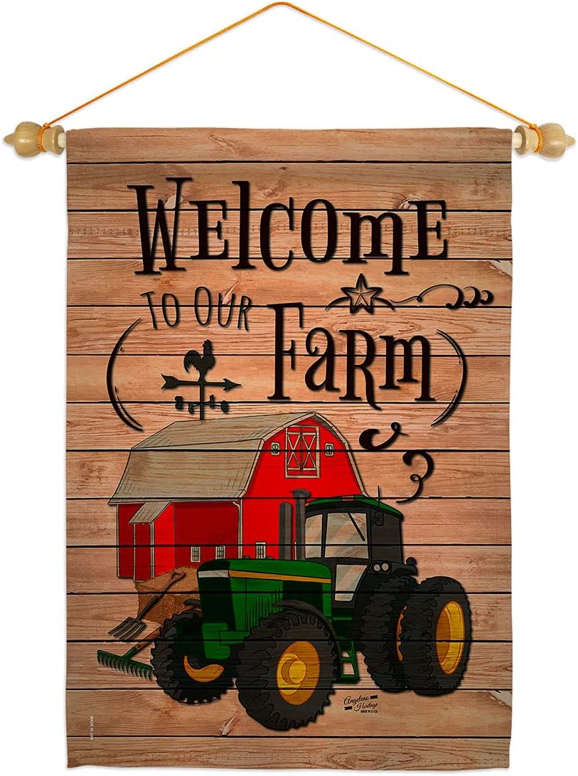 Welcome to our Farm Garden Flag Set Wall Holder Country Living Primitive Western Barn American Rustic Cowboy Rural Ranch Small Decorative Gift Yard House Banner Made In USA 13 X 18.5